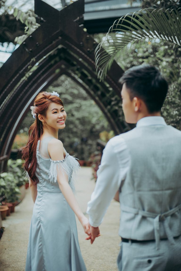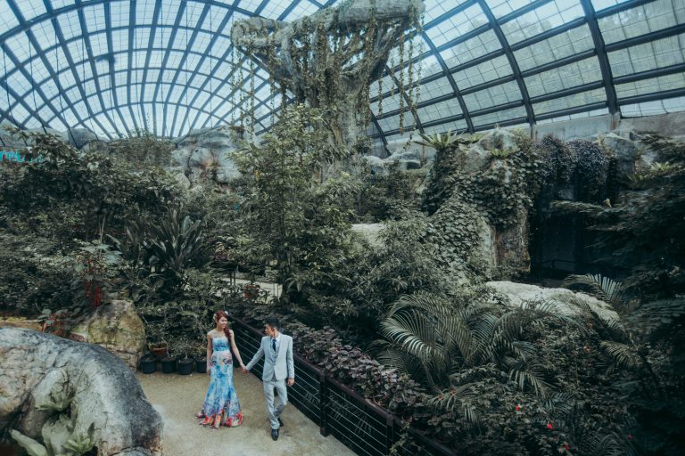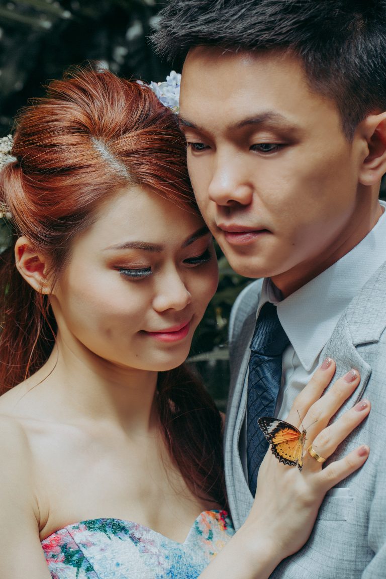 This pre-wedding session was taken in Entopia Butterfly farm. ‘Entopia, a tropical sanctuary for our planet’s little denizens from those that fly freely in the sky to the ones that creep stealthily beneath the ground. The living garden features more than 200 species of plants with waterfalls, ponds, caves and other artistic gardens. We call this place a “Mini garden by the bay” because we feel that the architecture design is similar to the Singapore “Garden by the bay.